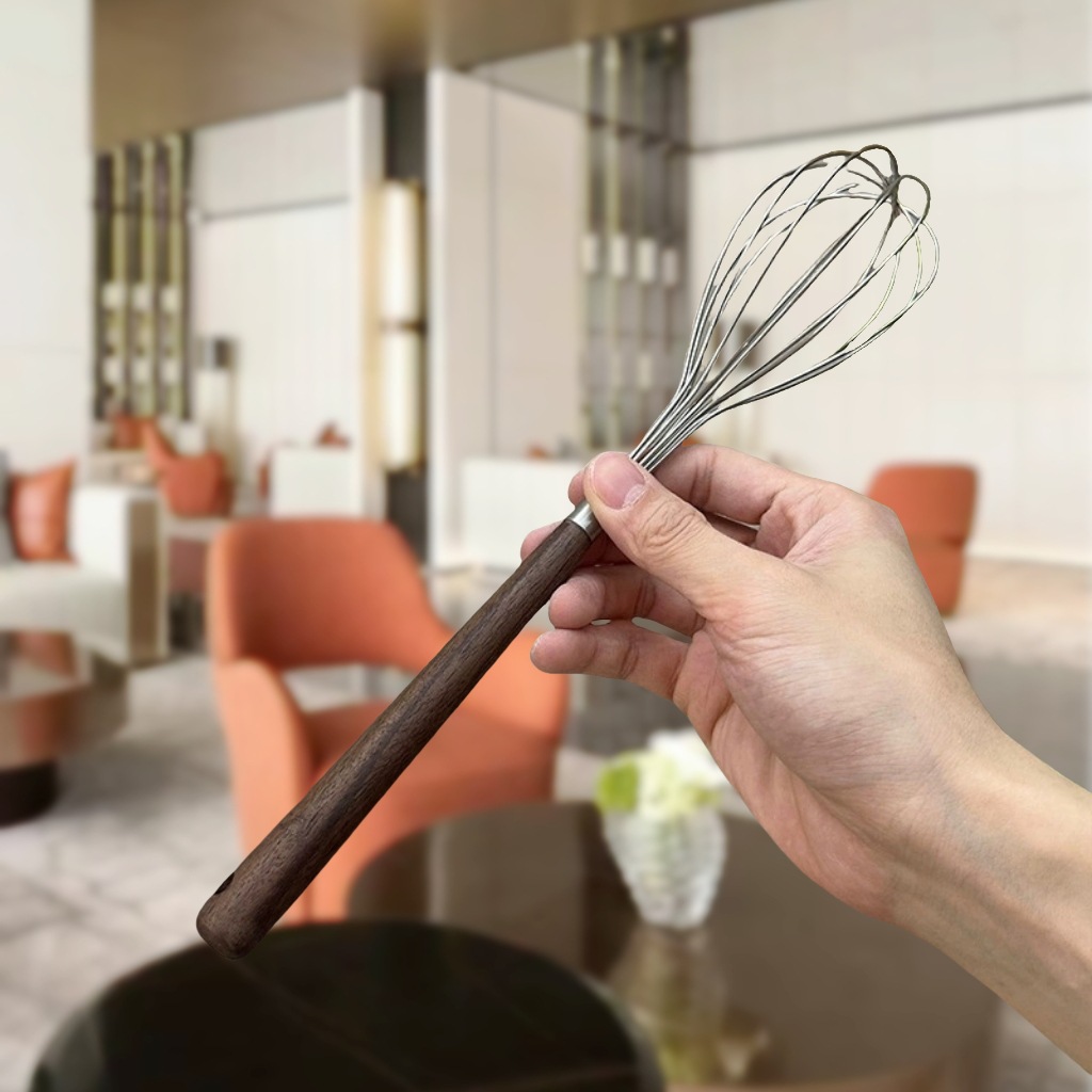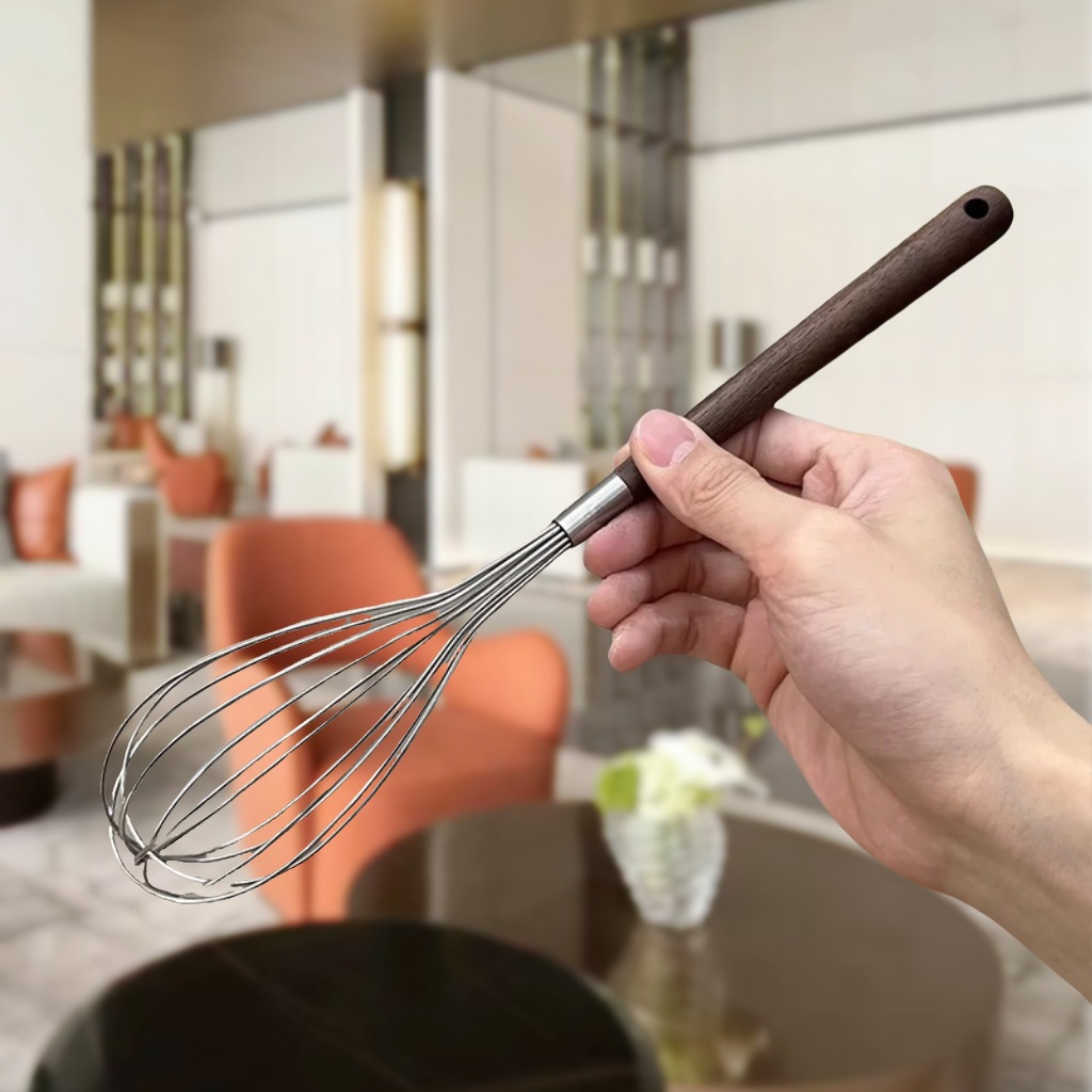 304 Stainless Steel Walnut Handle Whisk Manual Modern Simple Baking Appliance Egg Cream Whisk Stick
